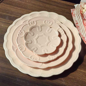 Винтажная рельефная 13-дюймовая тарелка для зарядного устройства, розовая кружевная посуда с тиснением, набор из 4 предметов для свадебной столешницы, аренда Западной посуды
