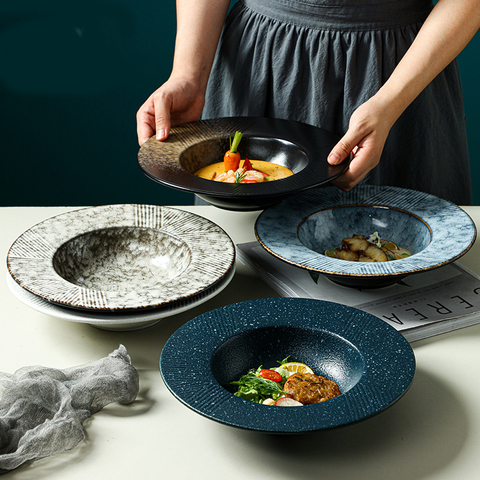 Лучшие продажи 10 дюймов матовый суп керамическая печатная десерт современные ресторанные 12 дюймов тарелка для пасты для свадьбы обеденный стол