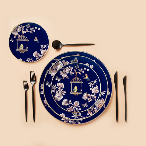 Vintage çin tarzı bahçe serisi çiçekler ve kuşlar için seramik yemek seti yemekleri kemik çin servis örtüsü düğün kiralama